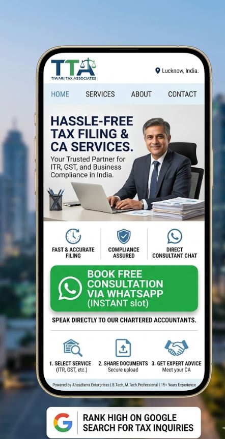 Stop losing clients to other agencies. Get your own professional Tax Consultant website where businesses can discover your ITR, GST, and Accounting services and chat with you directly on WhatsApp.